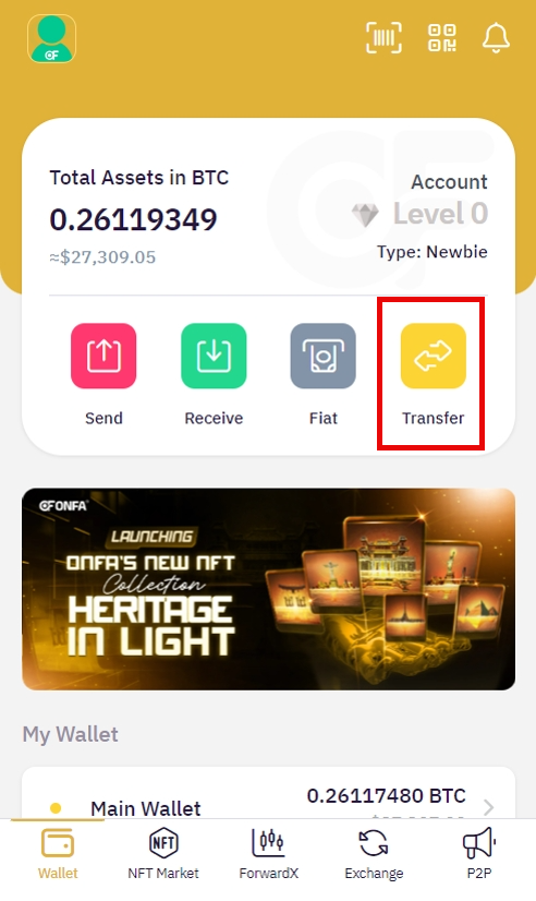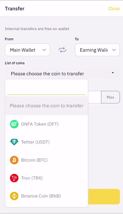 スワップ機能では、ONFA ForwardX**アカウント内のウォレット間で手数料なしで資金**を移動できます。対象は以下の通りです：