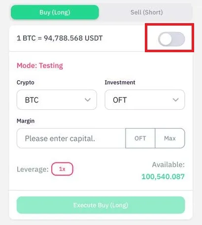 1. Apalancamiento por defecto **1x**, máximo **100x**