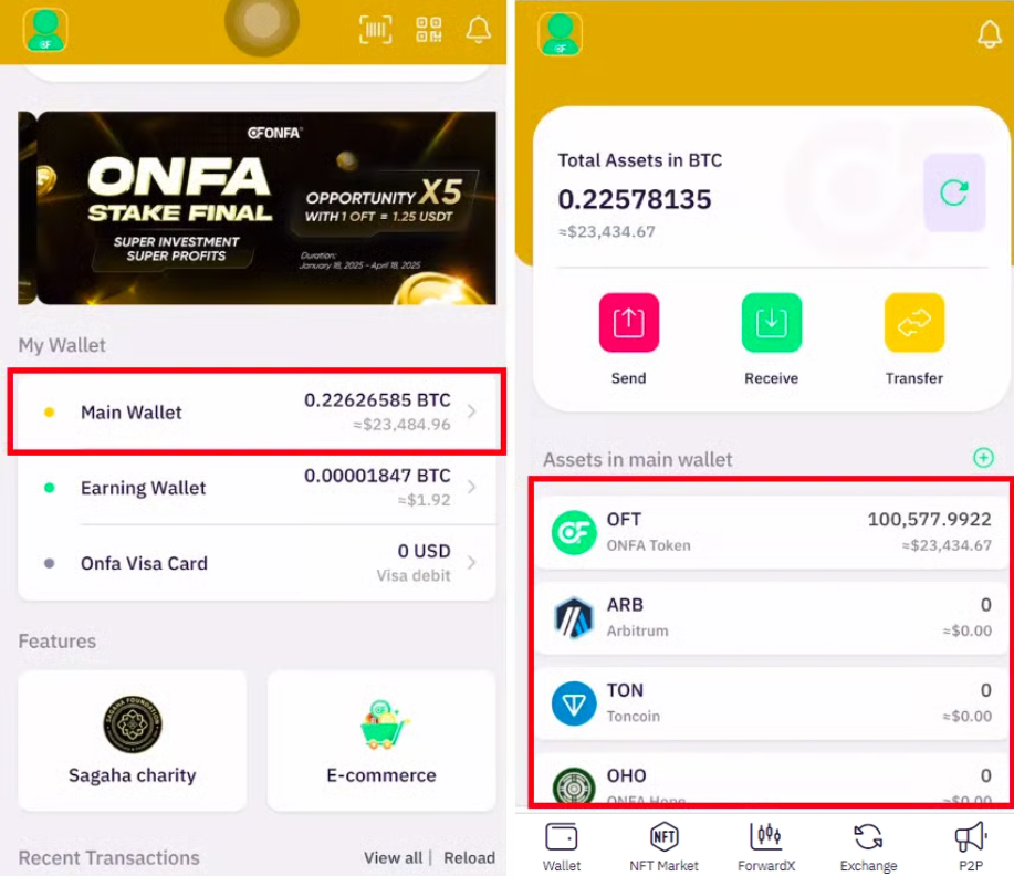 * Nhấn vào **icon "+" ở  mục Tài sản trong ví chính** để: