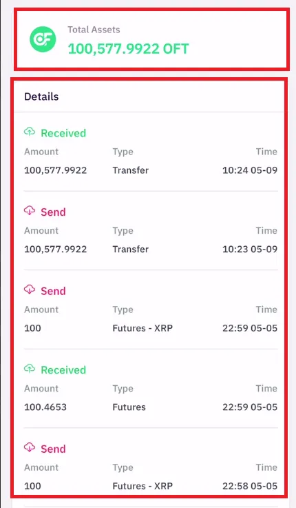 * Cuộn xuống để xem danh sách coin và số dư.